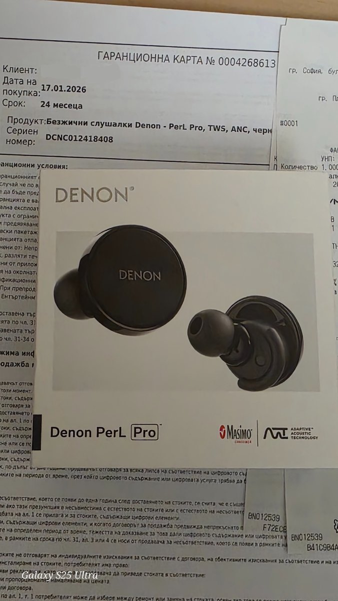 Продавам чисто нови слушалки Denon Perl Pro Цена 399лв или 200euro слушалките са ми подарък който не смятам да ползвам имат гаранция 24 месеца към Ozone.bg плус още 24 месеца имат удължена гаранция ако се случи нещо с тях закупени на 17.01.2026г