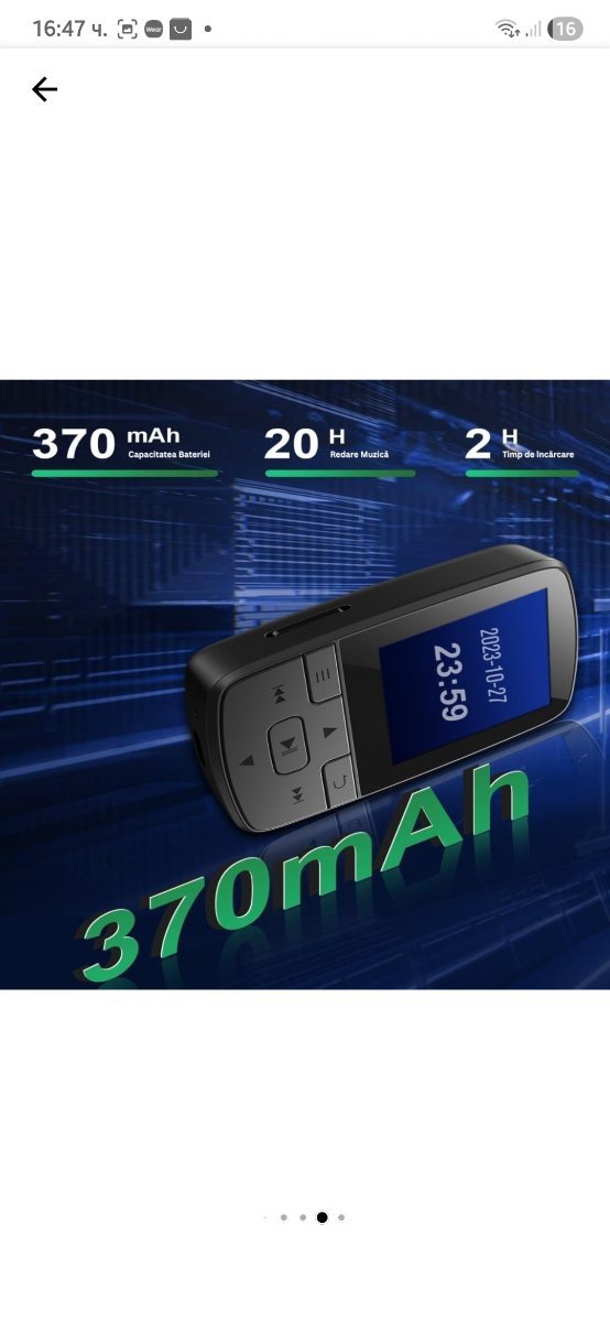 matic Posted 2 hours ago Share Posted 2 hours ago Мини MP3 плейър, 1.4-инчов екран, Bluetooth 5.2, 64GB памет, поддържа SD карта до 128GB, управление с бутони, щипка за закопчалка, HiFi звук, FM радио, гласов рекордер, хронометър, крачкомер, преносим, USB-C, слушалки в комплекта, черен Цена 15 евро Quote Link to comment Share on other sites More sharing options...